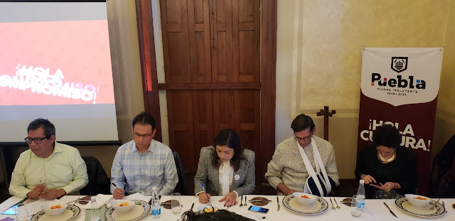 Ahí en el restaurante el Mural de los Poblanos donde dicen que Marcelo García Almaguer es socio de Salvador Cue hijo, se realizo el desayuno con la alcaldesa Claudia Rivera quien dio a conocer su posición política ante los medios de comunicación ahí reunidos a quienes les dijo que no sera a través del golpeteo mediático como se arreglaran las cosas con los medios yo no soltare dinero señalo la alcaldesa quien aclaro que su estilo es diferente
