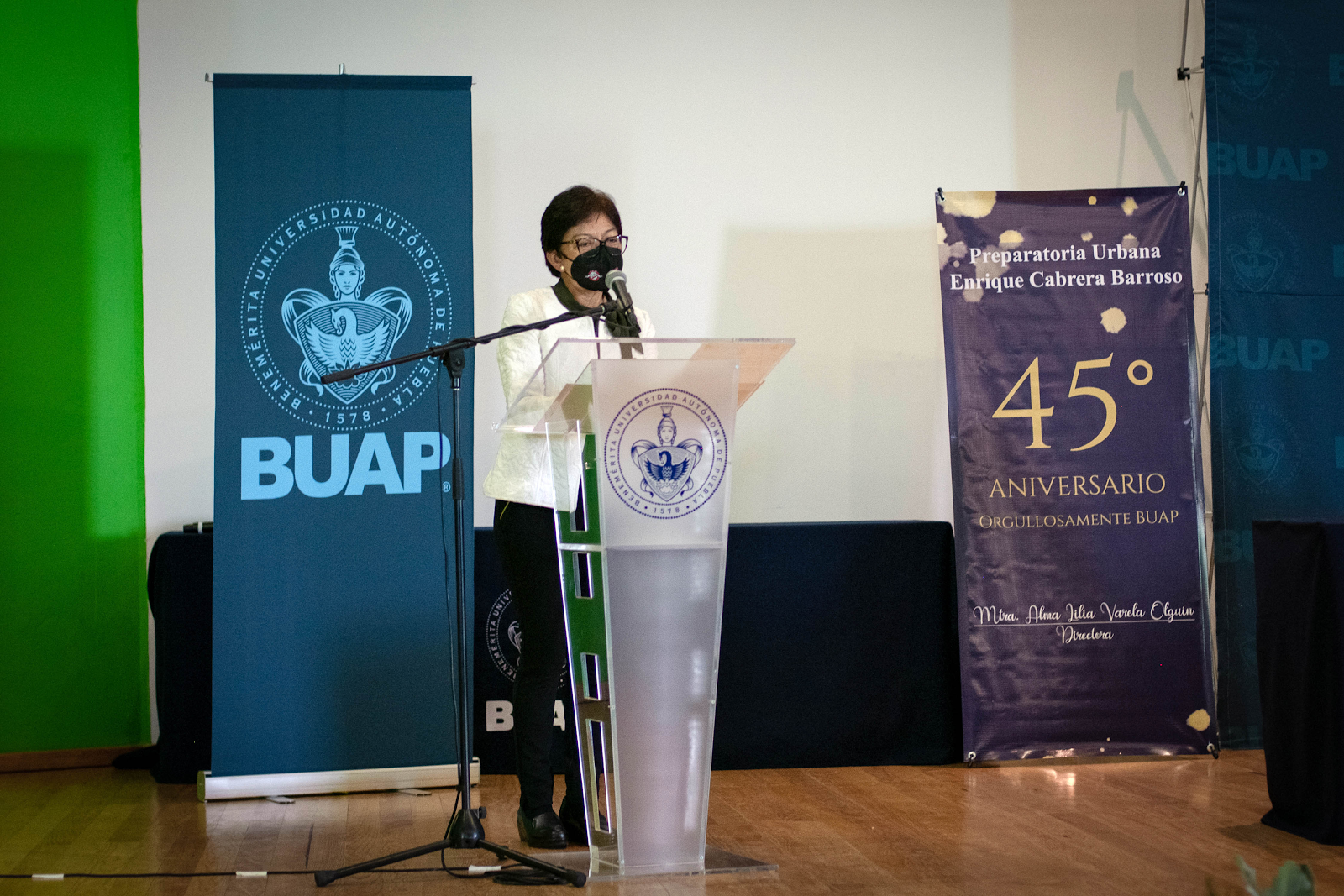 En su intervención, Alma Lilia Varela Olguín, directora de la Preparatoria Urbana Enrique Cabrera Barroso, afirmó que lo más preciado para el ser humano es el conocimiento. Por este motivo, desde hace 45 años esta preparatoria es parte de una de las seis mejores universidades del país, la BUAP, y cobijada bajo su excelencia académica forja mujeres y hombres que han contribuido al arte, la ciencia, las humanidades y las ingenierías. Recordó que su adhesión no resultó fácil por una serie de trámites administrativos; sin embargo, por medio del diálogo y compromiso, el 6 de septiembre de 1977 se declaró su incorporación a la Máxima Casa de Estudios en Puebla. “A 45 años de distancia somos un referente en educación media superior, por lo que seguiremos trabajando para otorgarle a la educación su sentido humano.